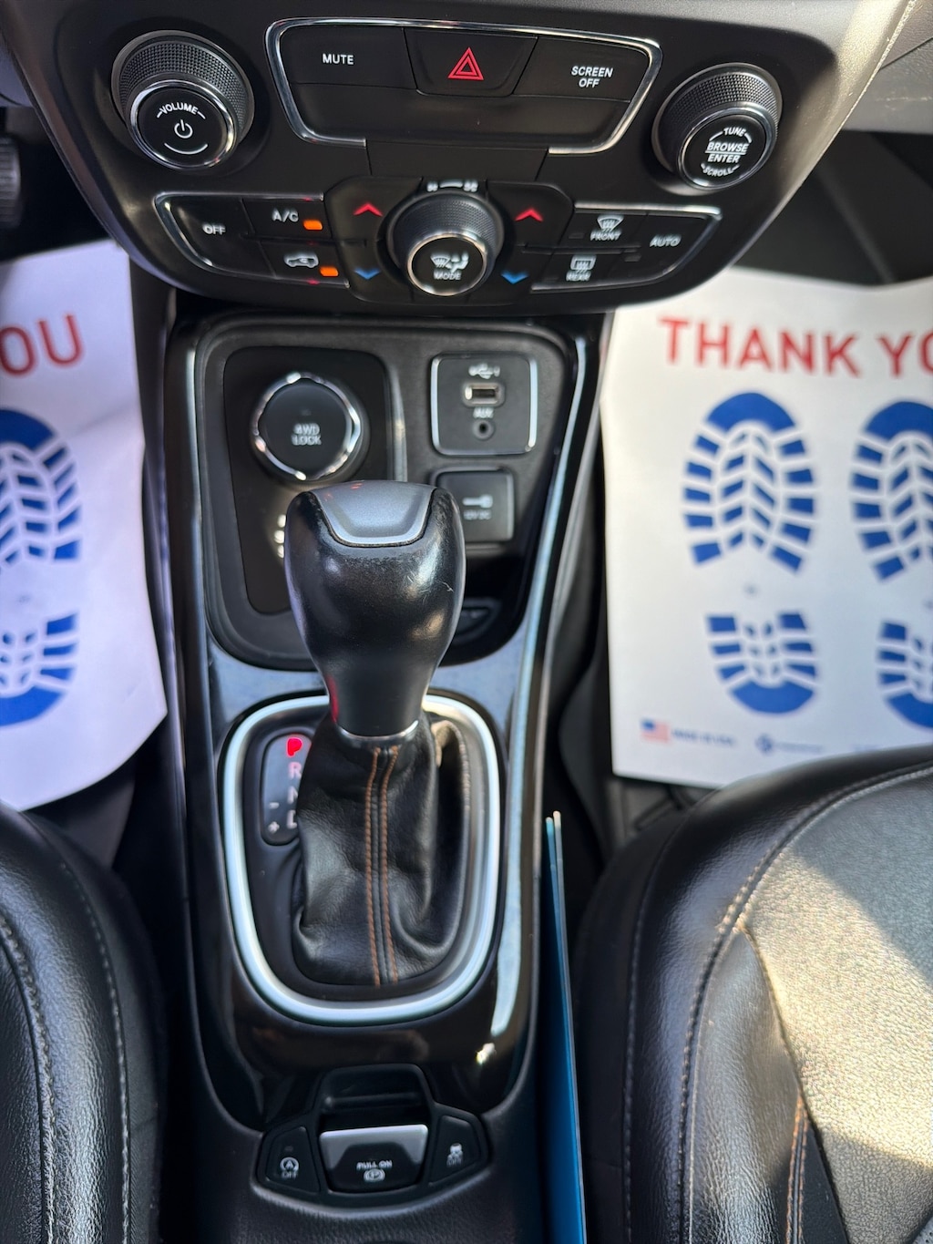 - Leather/metal-look shift knob trim