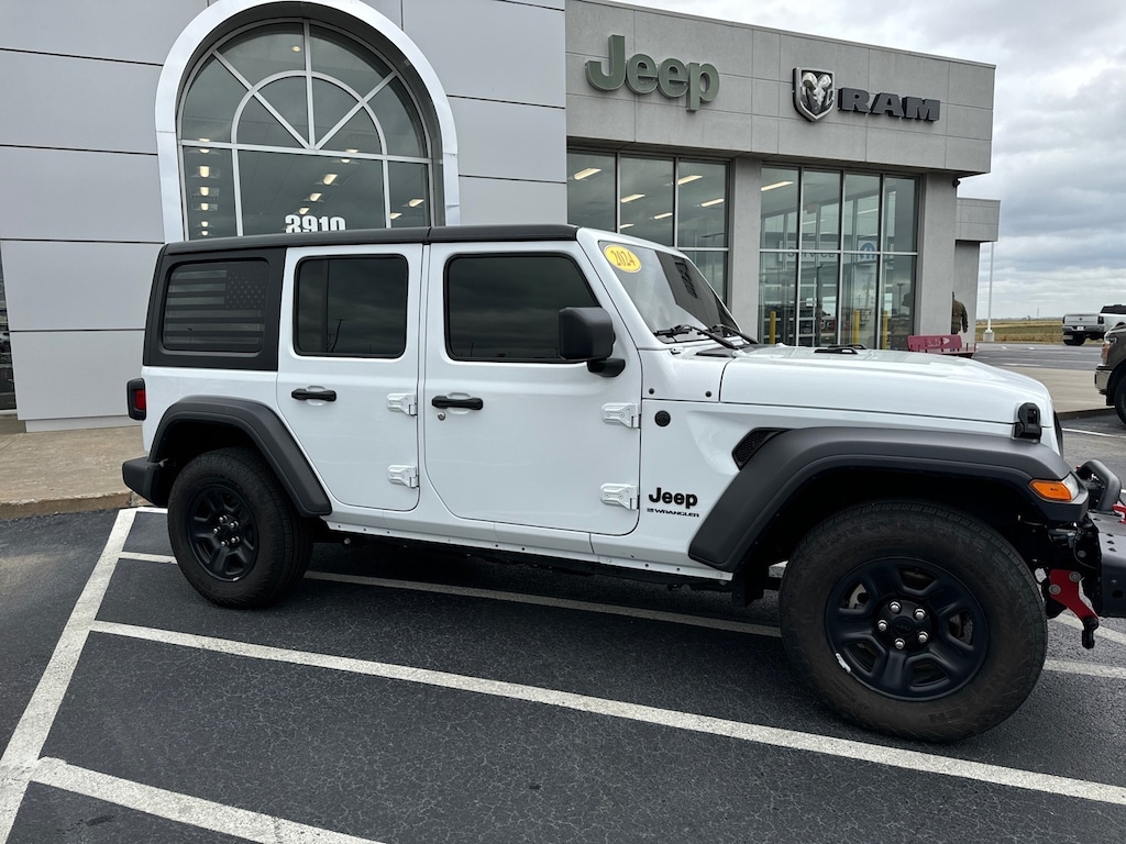 Thank you for your interest in one of Bayird Dodge Chrysler Jeep Ram of Blytheville's online offerings. Please continue for more information regarding this 2024 Jeep Wrangler Sport with 6,516mi. Off-road or on the street, this Jeep Wrangler Sport handles with ease. This 4WD-equipped vehicle will handle majestically on any terrain and in any weather condition your may find yourself in. The benefits of driving an Four Wheel Drive vehicle, such as this JeepWrangler Sport, include superior acceleration, improved steering, and increased traction and stability. Look no further, you have found exactly what you've been looking for. There are many vehicles on the market but if you are looking for a vehicle that will perform as good as it looks then this Jeep Wrangler Sport is the one!